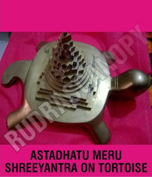 Shreeyantra is the abode of devi lakshmi and when this is placed over a tortoise it becomes more powerful as tortoise have a very long life and they move slowly which signifies that there shall be abundance of lakshmi and the possessor shall gain long healthy life and his wealth shall move out very slowly as lakshmi ji is chanchala, she cannot stay fixed in ones place but installing a meru pristha shree yantra on tortoise in brass shall make lakshmi stable in ones home or office.